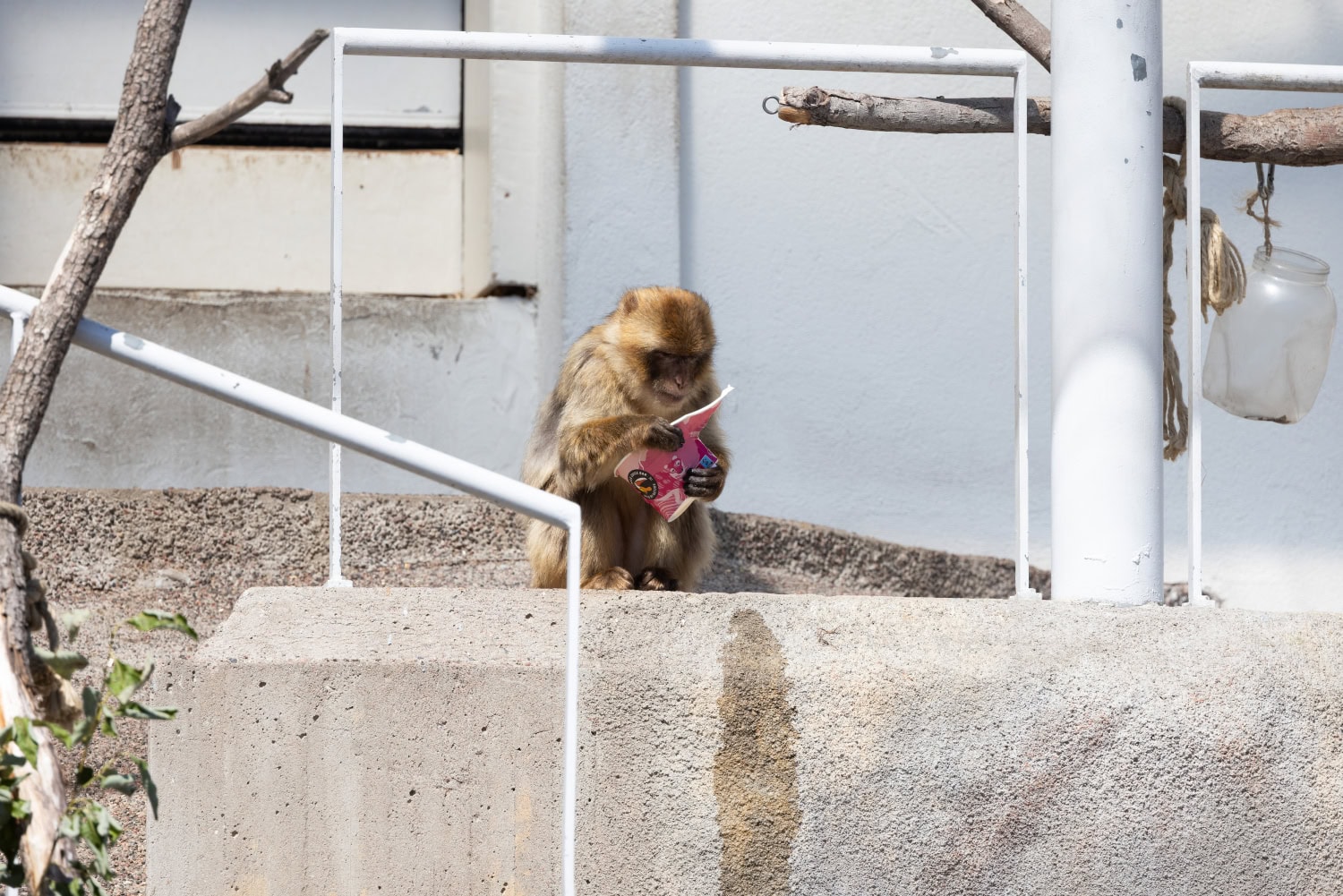 Berberiapinoiden helleherkkuna oli ”mehujäät.” Apinat nauttivat pahvimukin sisälle tehdyt herkkunsa mielellään varjossa, mutta osalle pahvimukin repiminen vaikutti olevan syömistä kiinnostavampaa puuhaa.
