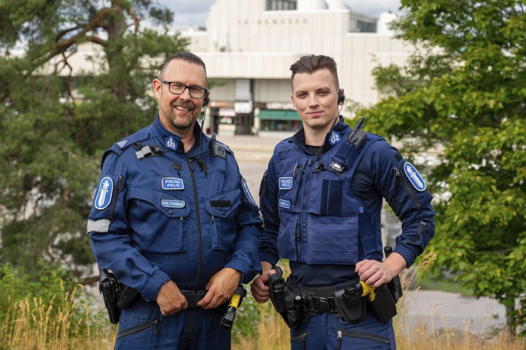 Vanhempi konstaapeli Jari Savolainen on tehnyt jo 18 vuoden uran poliisissa, kun taas vanhempi konstaapeli Lassi Rahikainen on pukeutunut sinihaalareihin 6 vuotta.